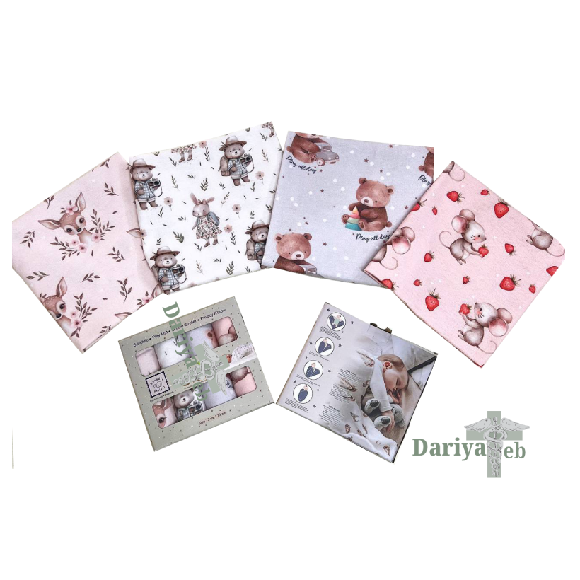 دستمال خشک کن نوزادی سایز ۷۵*۷۵ اگر به دنبال یک‌ خشک‌کن پنبه‌ای فوق‌العاده نرم هستید، قطعا خشک‌کن پک 4 و2 عددی همان چیزی است که به دنبال آن می‌گردید. جنس پنبه‌ای این محصول به شما این اطمینان خاطر را می‌دهد تا با خیال راحت پوست لطیف نوزاد را با آن خشک کنید. دستما‌ل‌های خشک‌کن برای استفاده روز‌مره، بعد از هر شست و شو به کارتان می‌آیند. همچنین ابعاد این دستمال‌ها طوری است که به منظور روانداز و دورپیچ نیز مورد استفاده قرار می‌گیرند.