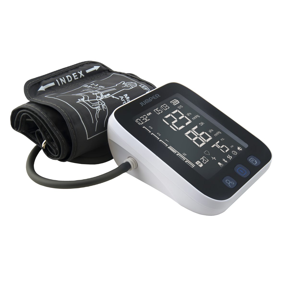 فشارسنج بازویی دیجیتال برند جامپر مدل JPD-HA121، با قابلیت ذخیره نتایج 2 کاربر در حافظه، نمایش تعداد ضربان قلب، دارای فناوری بلوتوث، کاربرد خانگی، دارای نمایشگر LCD، به همراه 4 عدد باتری قلمی، کیف ضد ضربه، کابل micro USB از جمله محصولات تخصصی در حوزه لوازم پزشکی است که با بهره‌گیری از فناوری‌های روز و استانداردهای جهانی طراحی و تولید شده است. این محصول با هدف ارتقاء کیفیت مراقبت‌های بهداشتی و پزشکی در محیط‌های خانگی یا حرفه‌ای، عملکردی دقیق، ایمن و قابل اعتماد ارائه می‌دهد. طراحی ارگونومیک، استفاده آسان و ویژگی‌های فنی پیشرفته از جمله مزایای مهم این دستگاه به شمار می‌رود. همچنین، با توجه به نیازهای کاربران، این محصول قابلیت استفاده مستمر و طولانی‌مدت را داشته و نقش مؤثری در بهبود فرآیندهای پایش سلامت ایفا می‌کند.